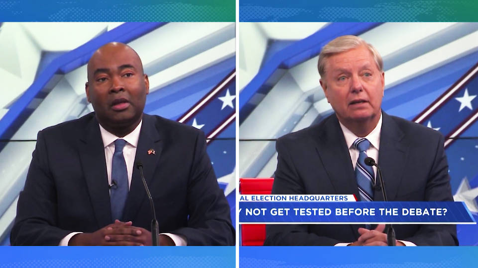 Lindsey graham debated an imaginary opponent but he was debating jaime harrison who scored a decisive victory. Lindsey graham likened to cheating child by opponent in debate ap 20278047649919 jpg. Lindsey graham in the first debate of the election for u s. Lindsey graham and democratic challenger jamie harrison faced off for the first time.