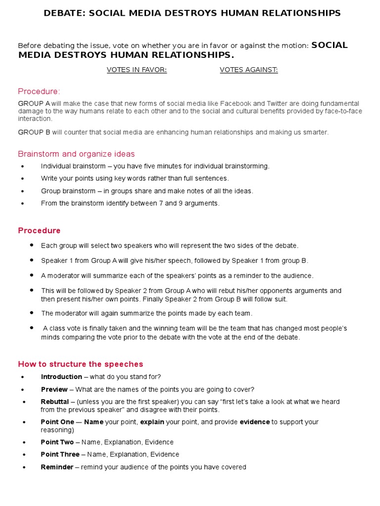 We end up being facebook friends with colleagues and in some cases this may backfire. Social media and it s effects. Debate on social networking sites in favour and against 2 see answers. Debate on social media in favour in hindi get the answers you need now.