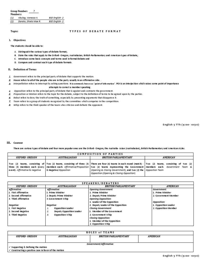 Three speakers fromeach side first affirmative constructive speech. Constructive speech the presentation of each team member s arguments and evidence for each aspect of the case 5 minutes each interpellation. What is the oxford oregon debate format. First negative interpellation of the first affirmative speaker.